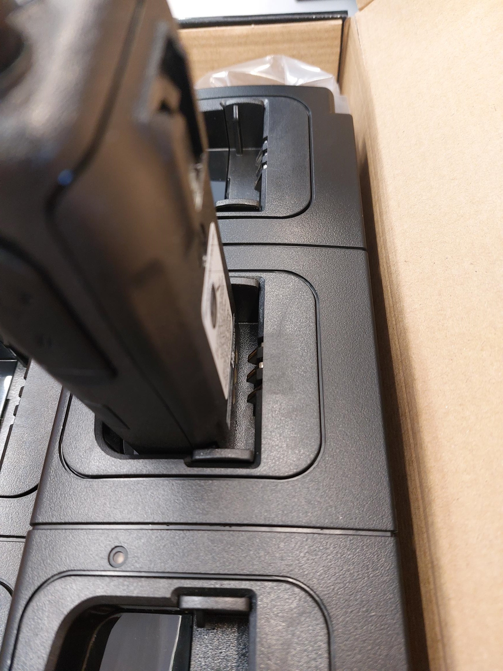 Battery Charger 6-Way for Motorola R2 Radios and Motorola DP1400 Radios. The charger is shipped with the battery locating rail in the