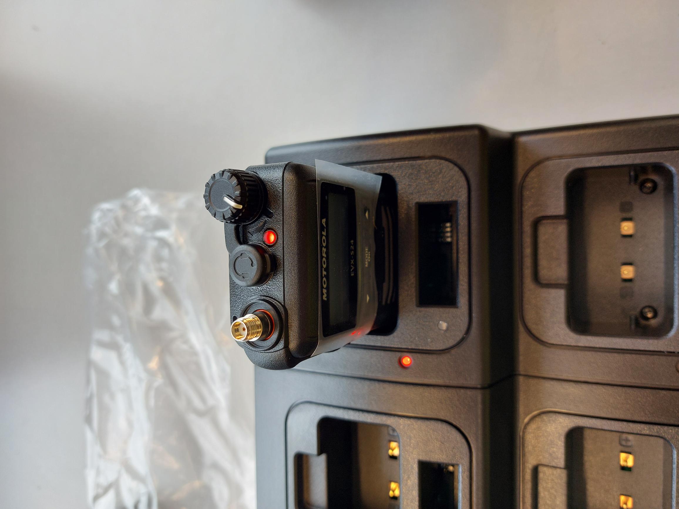 Download Data sheet: evx-s24-06-charger-manualbatteries-can-also-be-charged-separately-from-radiobattery-charger-6-way-for-motorola-evx-s24-radios ArticleNo/ P/N: EVX-S24-06 Radiotype: S24 Spesial offer 6-way smart charger for Motorola EVX-S24 Radios NOTE Spesial offer for November. Battery Charger 6-Way for Motorola EVX-S24 Radios. Batteries Can Also Be Charged Separately from Radio. For Li-Ion Chemistry Batteries. For table and wall-mount. (Wall-mount bracket built in.) Euro cord and Power supply included. NON-IMPRES Price request Download Data sheet: evx-s24-06-charger-manualbatteries-can-also-be-charged-separately-from-radiobattery-charger-6-way-for-motorola-evx-s24-radios